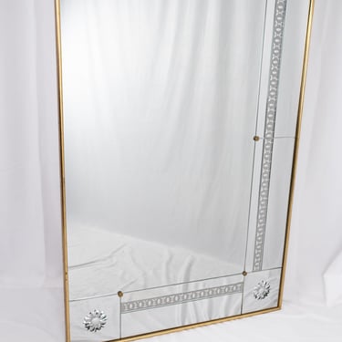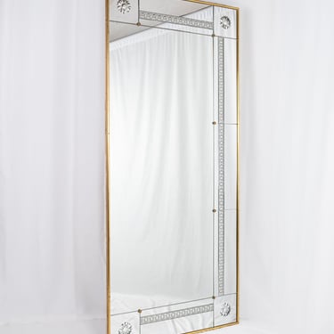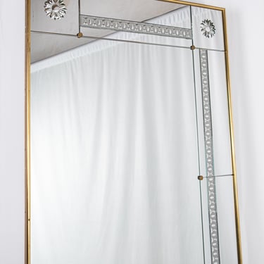Grand miroir de style brasserie, aux miroirs gravés, réalisé sur-mesure dans les années 1950, en France.