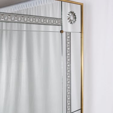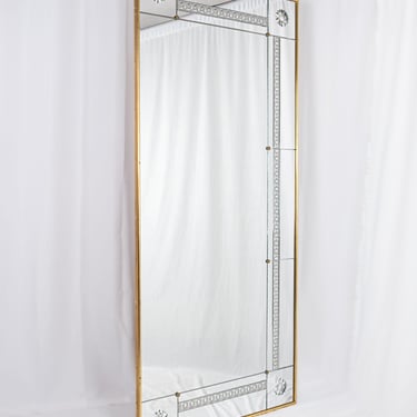 Large French brasserie-style mirror, with engraved mirrors, custom-made in France in the 1950s.