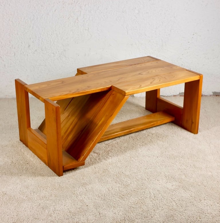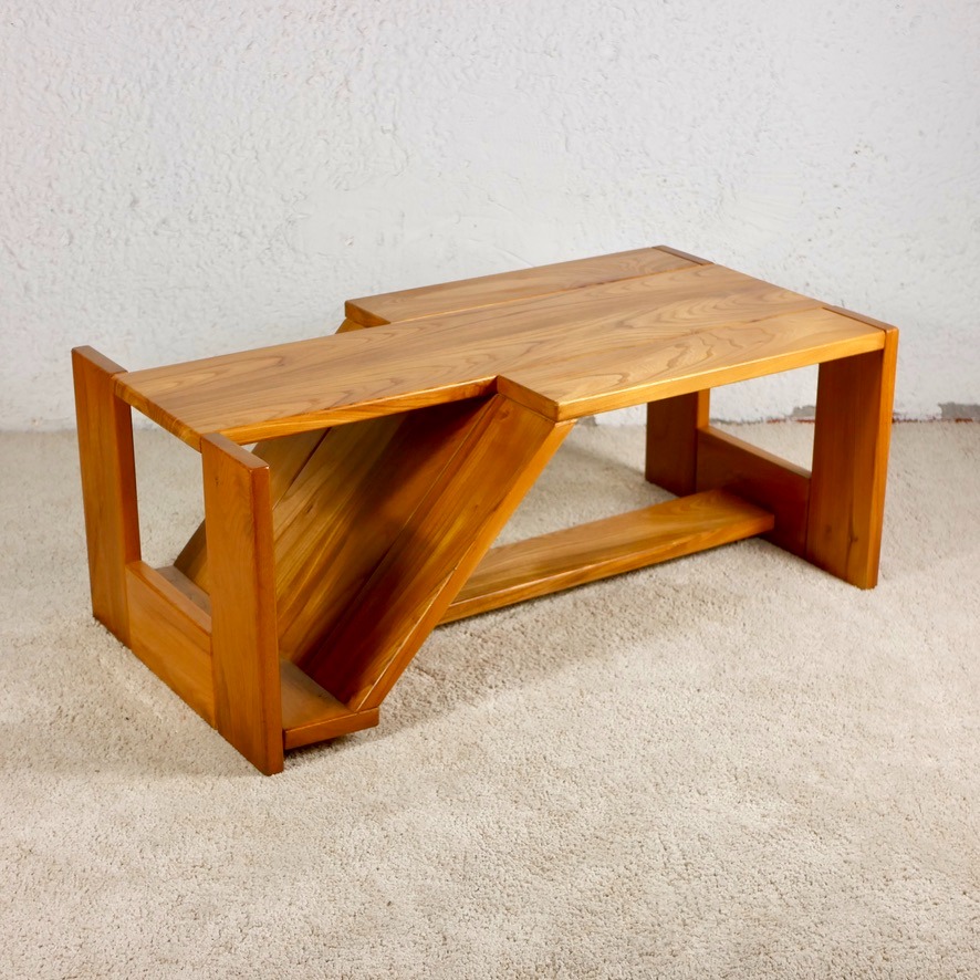 Stunning asymmetrical coffee table by Maison Regain, France, made in the 1980s. Made entirely in solid elm.