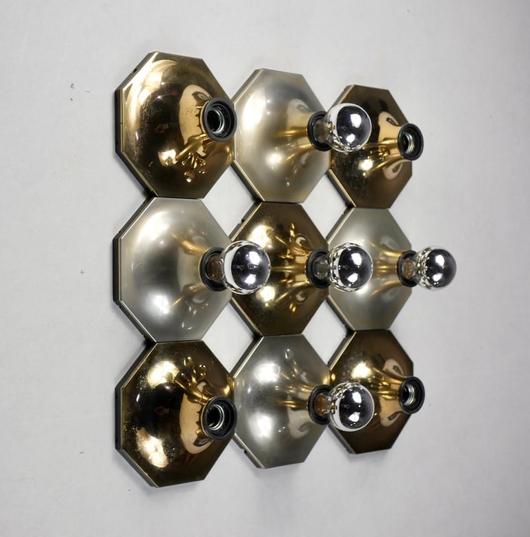 Beautiful octogonal brass wall lights designed in the 1970s by Motoko Ishii for Dil Italy.