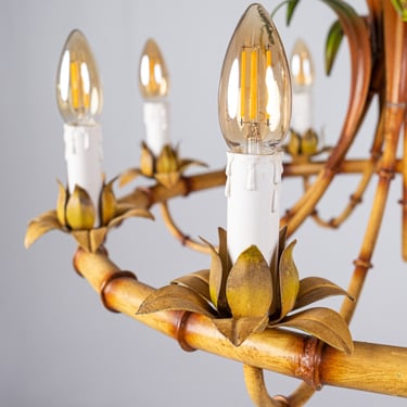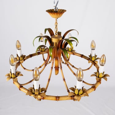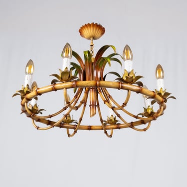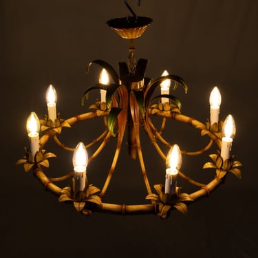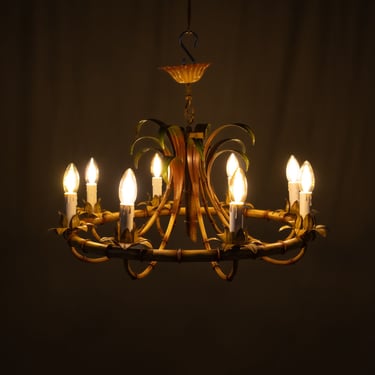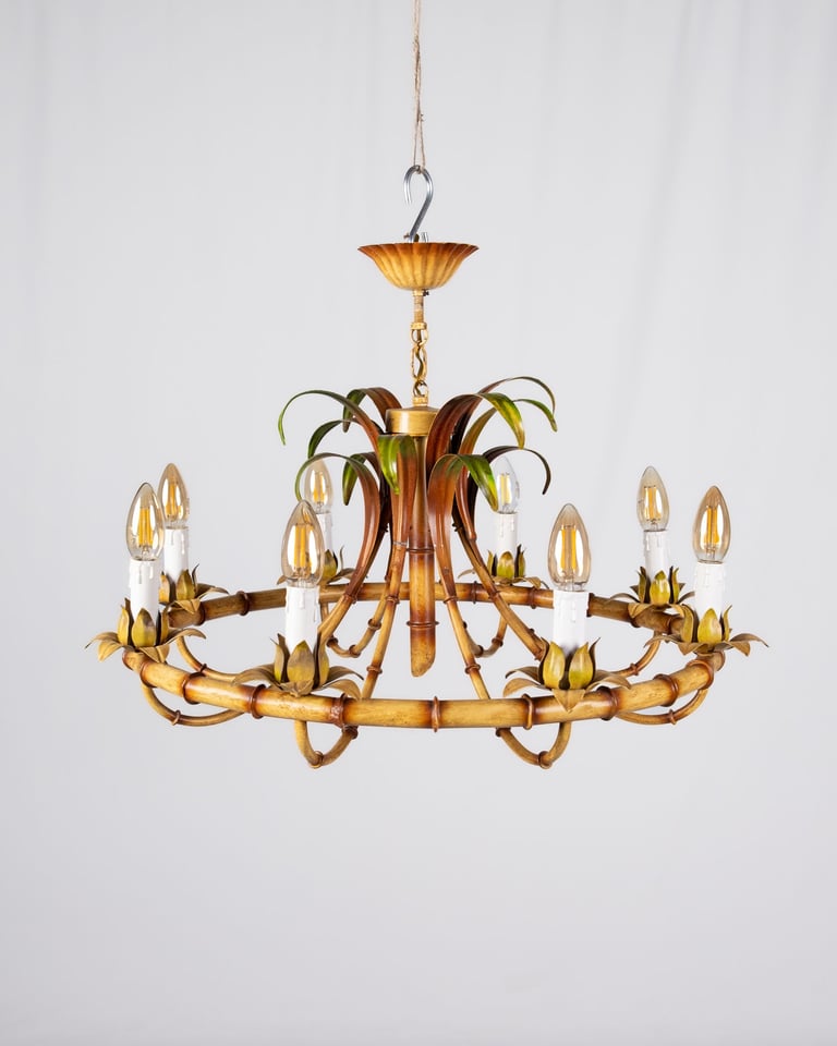 Lustre italien en métal imitation bambou / Italian faux bamboo chandelier