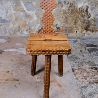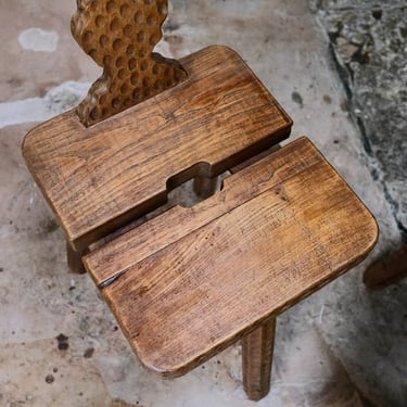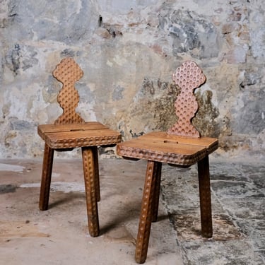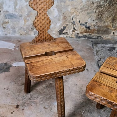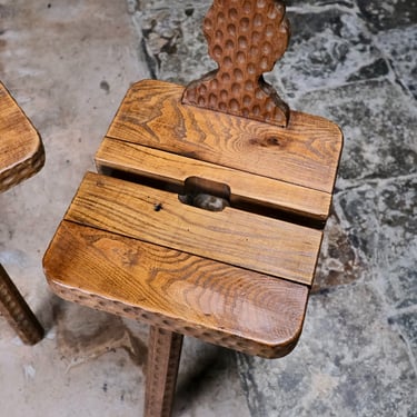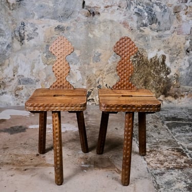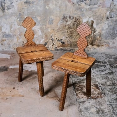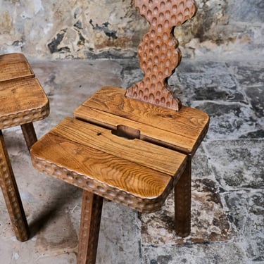 Unique pair of tripod chairs, handcrafted in Brittany, France, mid-20th century.