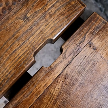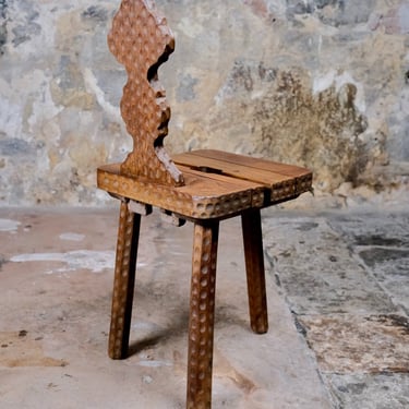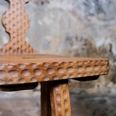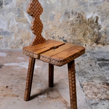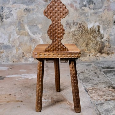 Combining folk art and brutalist aesthetics, these pieces are sculpted from solid oak, meticulously carved with a gouge to reveal expressive textures and fine artisanal details.