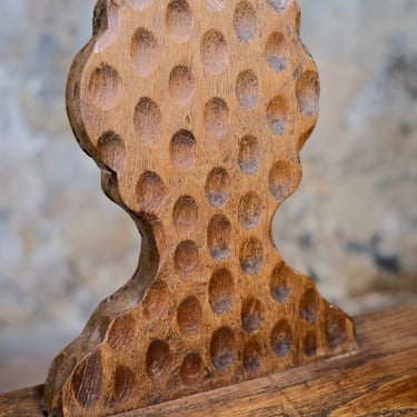 En chêne sculpté à la gouge, avec de très beaux détails de fabrication.