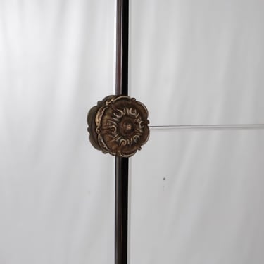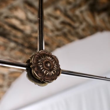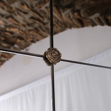 Constitué de 10 miroirs assemblés sur un cadre en bois et maintenus par des vis en métal doré à décor floral.