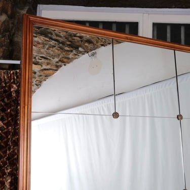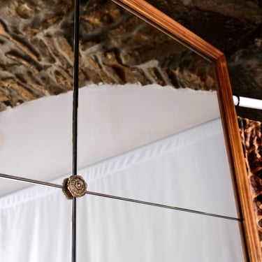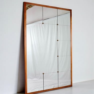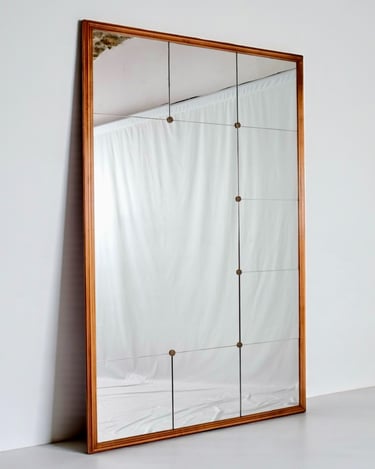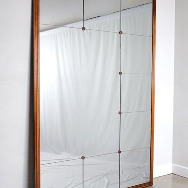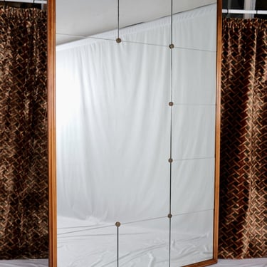 A striking, one-of-a-kind piece crafted in the 1960s. This impressive XXL mirror is composed of ten individual mirror panels mounted on a wooden frame, secured with gold-toned metal screws adorned with delicate floral motifs.