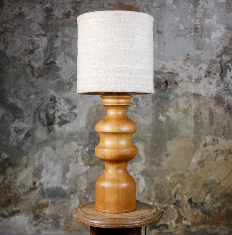 Superbe et lagre pied de lampe en chêne, bois tourné, travail anonyme français des années 60.