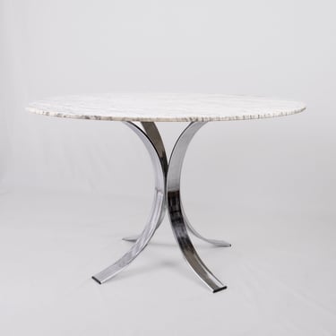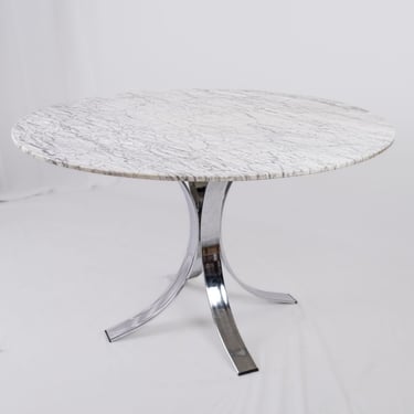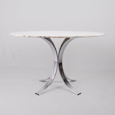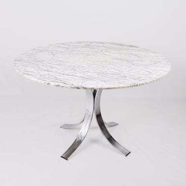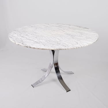 Table à manger ronde en marbre, fabriquée en France dans les années 1970-80.