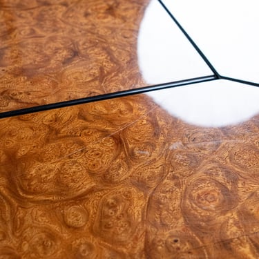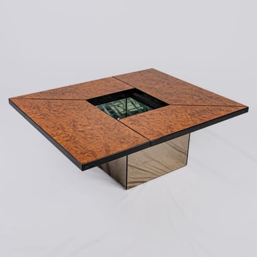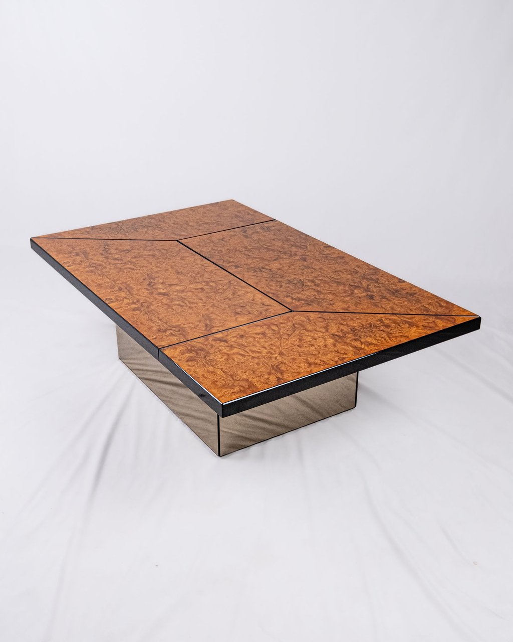 Table basse bar miroir en loupe d'orme / Elm wood coffee table with mirrored bar