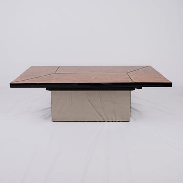 Gorgeous sliding coffee table with integrated bar, designed by Paul Michel for Roche Bobois, France, 1980s.