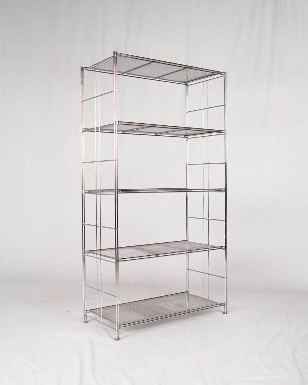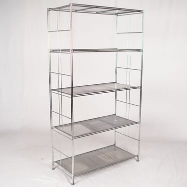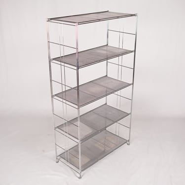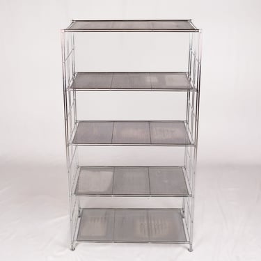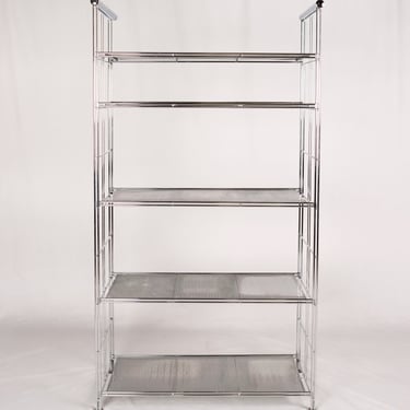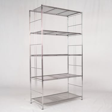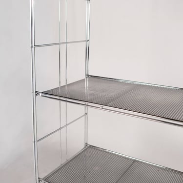 Large freestanding chrome-plated metal shelving unit, “Peter” model, designed by Niels Gammelgaard for IKEA, 1980s.