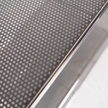 Pratique et robuste, les plateaux sont en métal perforé gris métallisé, et peuvent se positionner à la hauteur voulue.
