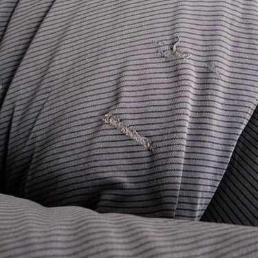 En velours gris à rayures diagonales marrons. Avec deux coussins assortis. Entièrement déhoussable.