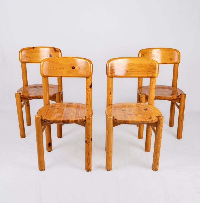 Série de 4 chaises en pin, conçues par Rainer Daumiller pour Hirtshals Savvaerk, fabriquées au Danemark dans les années 1970-80s.