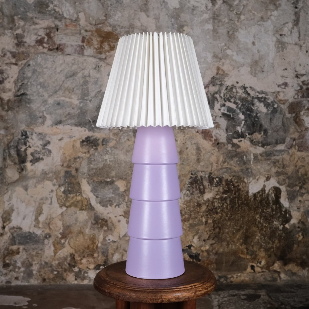 Grande lampe en céramique mauve fabriquée dans les années 80-90 par la faïencerie de Charolles, et distribuée par Roche Bobois, France.