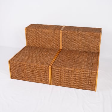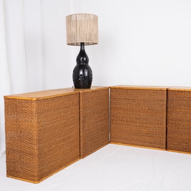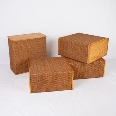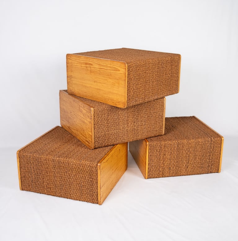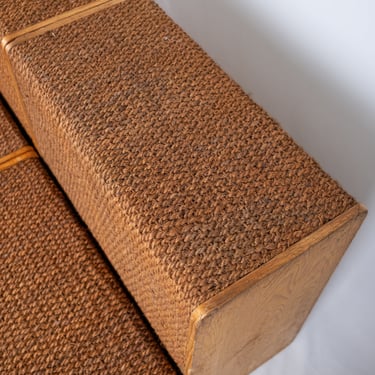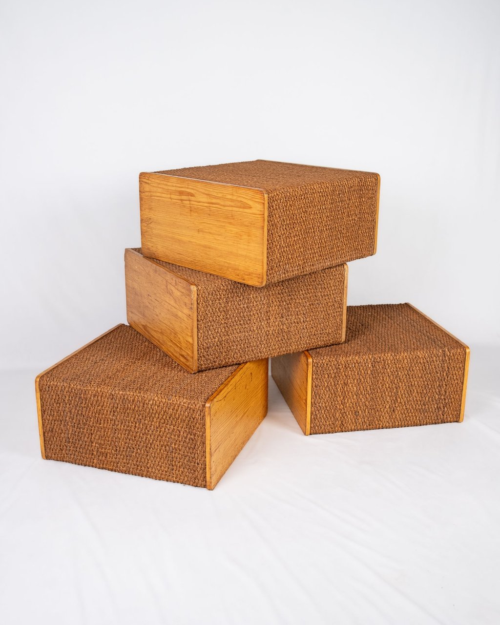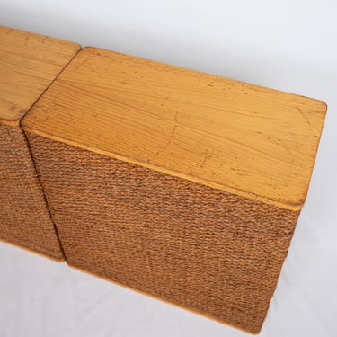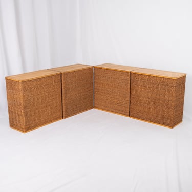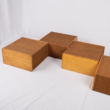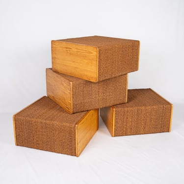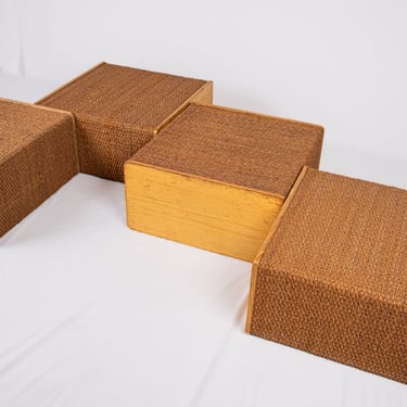 Charming set of four versatile modules in pine and rope, in Audoux and Minet style. Custom-made in France in the 1980s for a boutique, these pieces offer great modularity.