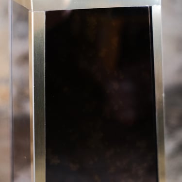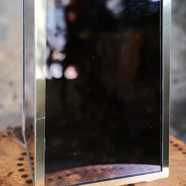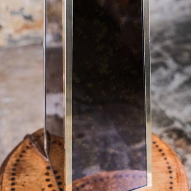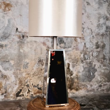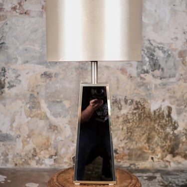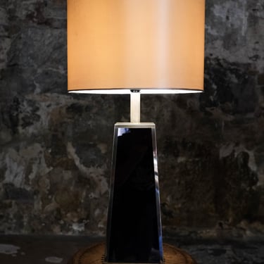 Jolie lampe en métal laitonné et verre, avec des facettes "écaille de tortue", France, années 1980.