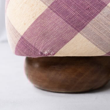 Charming tufted bench upholstered in a large-scale gingham fabric in soft mauve and cream tones, custom-made in France in the 1970s.