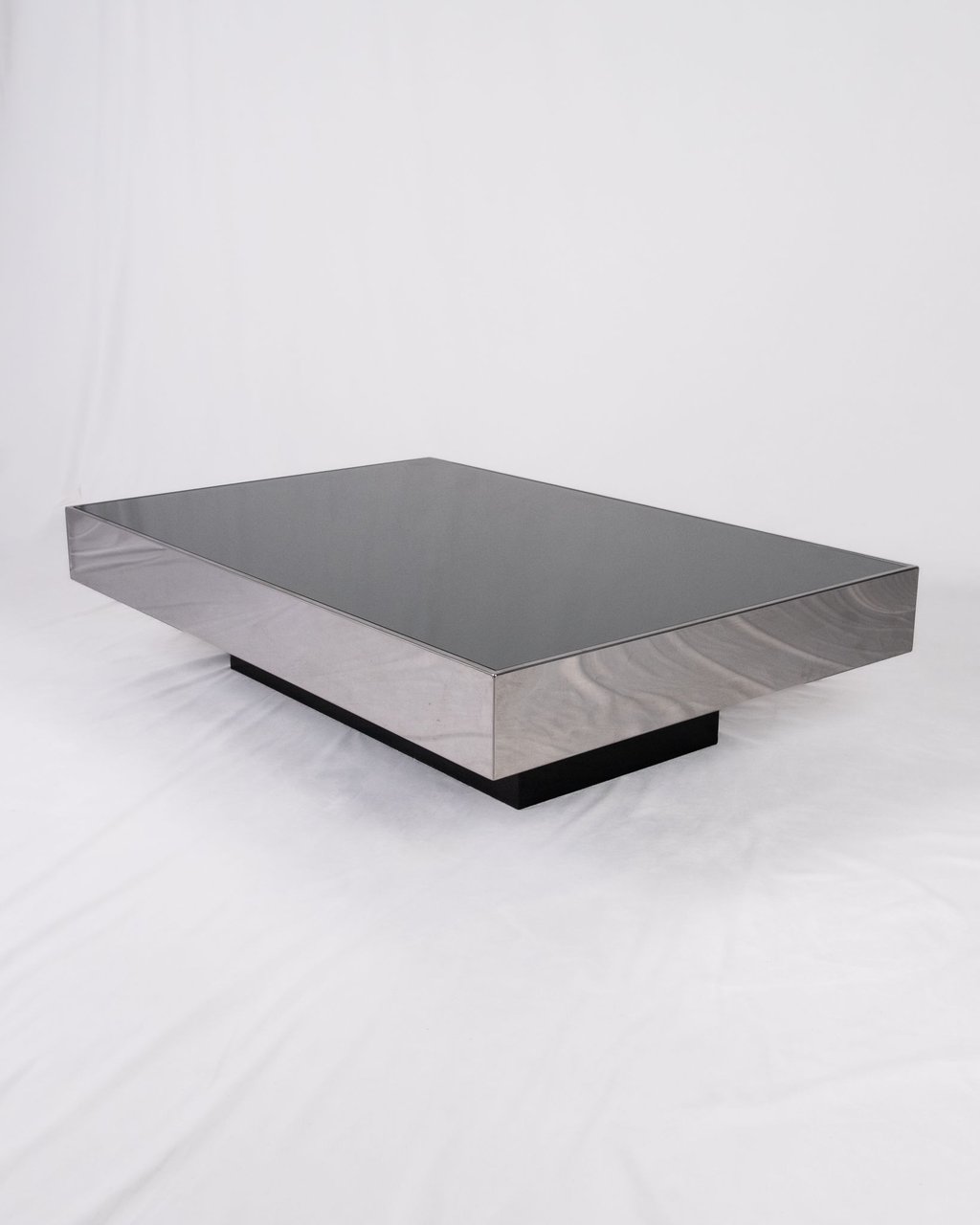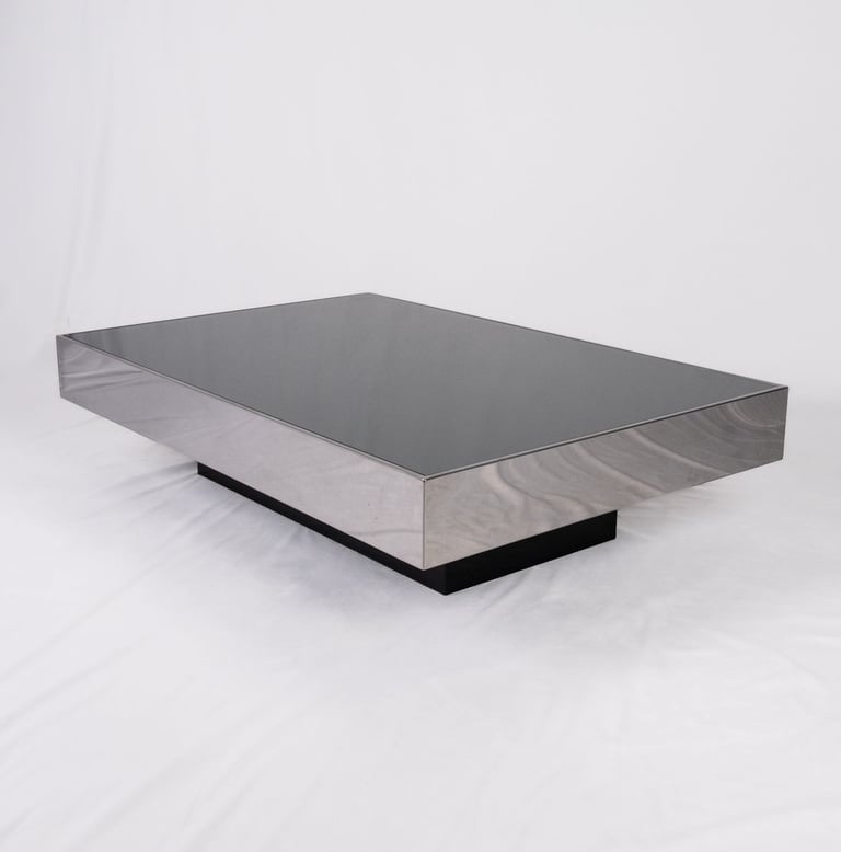 Beautiful coffee table with a mirrored glass top, designed by Willy Rizzo for Cidue, made in Italy in the 1970s, a striking example of refined Italian modernism.