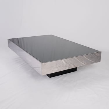 Très belle table basse au plateau en verre miroir, par Willy Rizzo pour Cidue, fabriquée en Italie dans les années 1970.