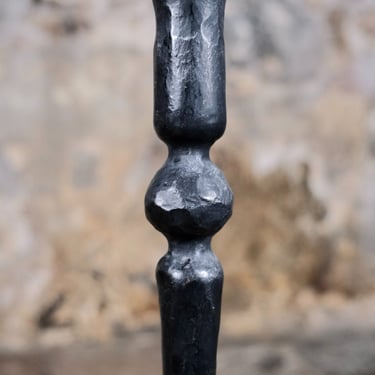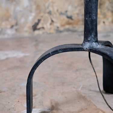 Unique piece, both brutalist and minimalist, and rich in beautiful details : sculptural variations, tripod base, candle feature. With shades of dark grey and blue.