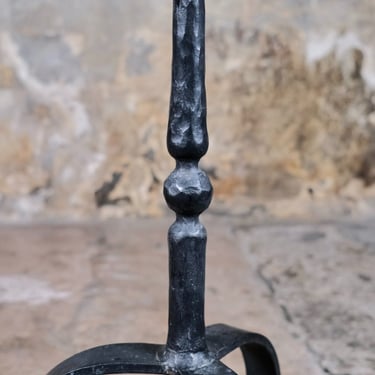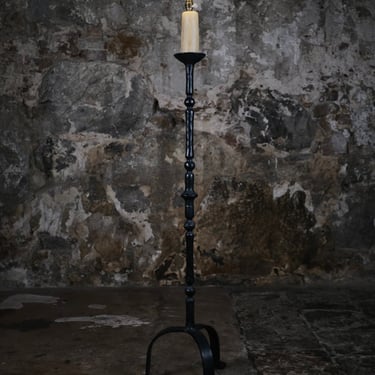 Elegant hammered wrought iron floorlamp, crafted by an artisan blacksmith in Brittany in the 1980s.