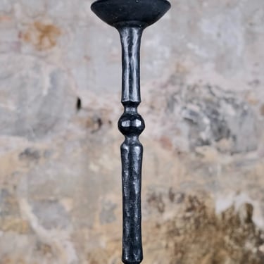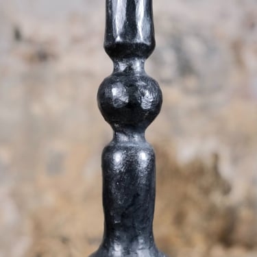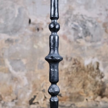 Élégant lampadaire en fer forgé martelé noir (teinte de gris foncé), réalisé par un artisan forgeron en Bretagne, dans les années 1980.