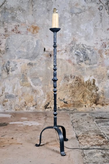 Lampadaire en fer forgé martelé / Hammered wrought iron floorlamp