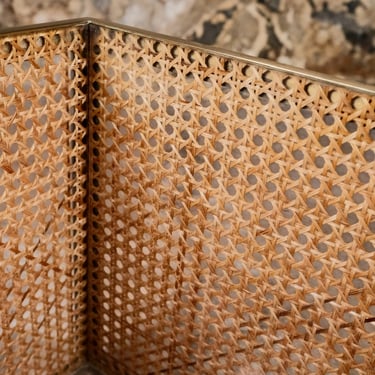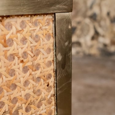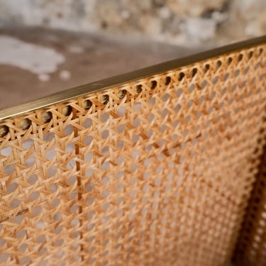 En plexi, cannage et laiton, de larges dimensions, il est très pratique et offre de multiples possibilités d'utilisation.