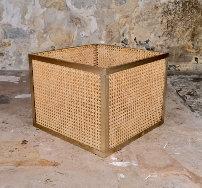 Beautiful and elegant plant pot or big square basket made in the 1970s attributed to Christian Dior.