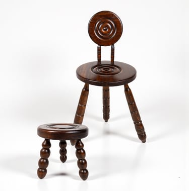 Chaise et tabouret en bois tourné / Turned wood chair and stool