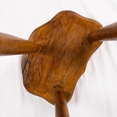 Free form tripod stool in elm wood, made in French Brittany in the 1950s.
