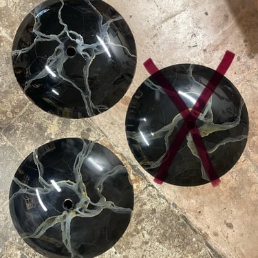 Deux larges suspensions galaxie en métal, peintes à la main, effet "émaillé".