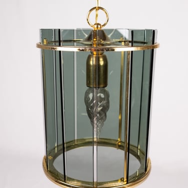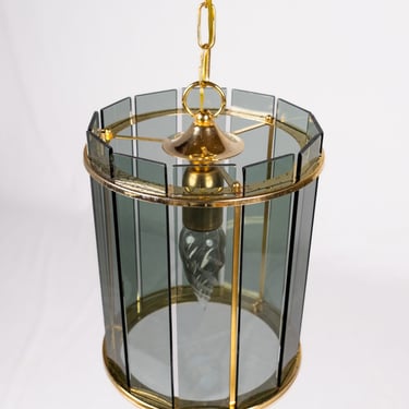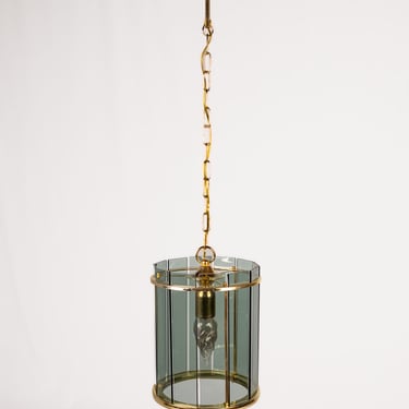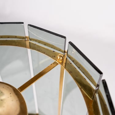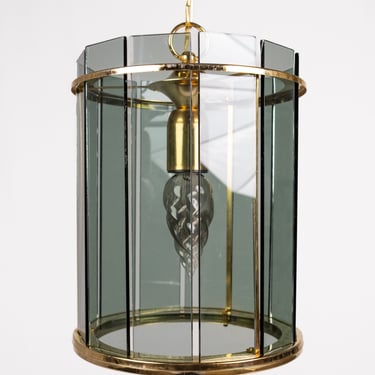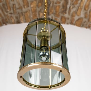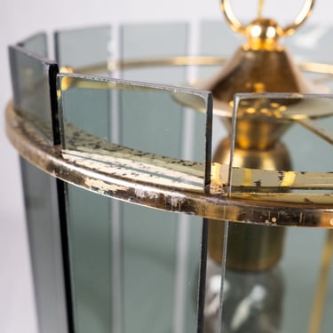 Lantern-style pendant featuring 12 glass facets, set on a gilt metal structure.