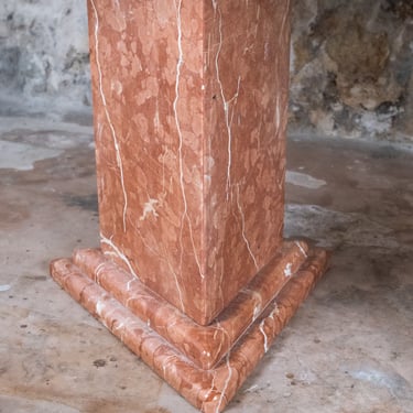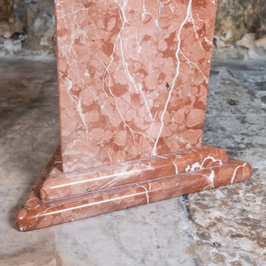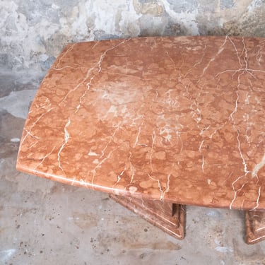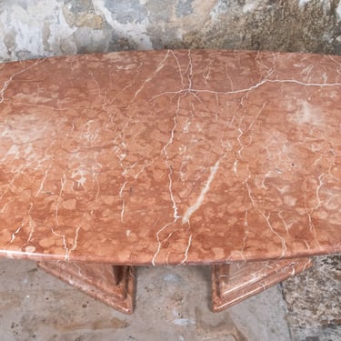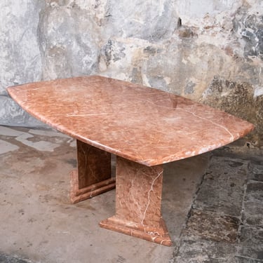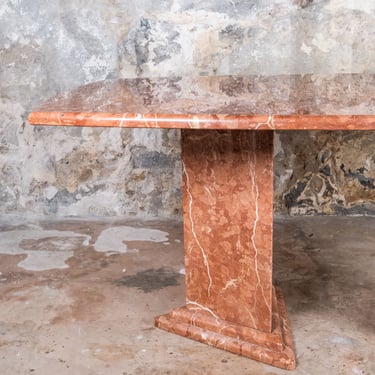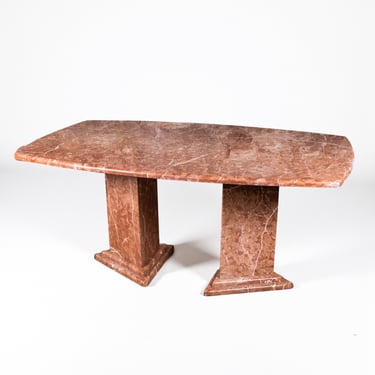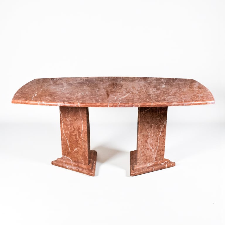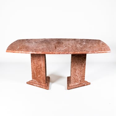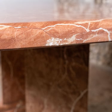 Sculptural dining table in Rojo Alicante marble, custom-made in the 1980s by its original owners.